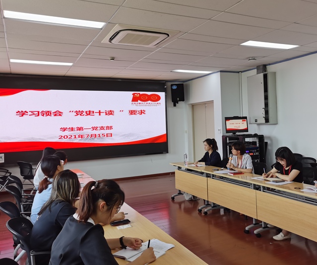 7月15日下午,伟德bv国际体育员工第一党支部师生党员在新南苑18号楼410室,认真学习市委书记李强同志为上海交通大学师生代表上党课并作形势报告时提出的“党史十读”要求。