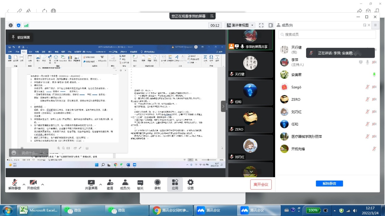 2022年3月24日下午1点,伟德bv国际体育数据科学与大数据技术教研室在腾讯会议举行本学期第二次线上教学工作会议。会议由教研室主任李萍主持,全体专业教师参加了此次会议。