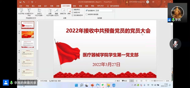 鉴于上海疫情趋紧,校园疫情防控形势依然严峻,医疗公司员工第一党支部积极响应公司准封闭管理制度,在公司党总支的指导下,2022年3月27日17:00,伟德bv国际体育员工第一党支部通过腾讯会议在线召开党员发展审批大会,员工第一党支部全体党员、8名发展对象及其入党介绍人出席会议,会议由员工第一党支部李茜书记主持。