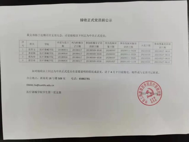 伟德bv国际体育员工第一党支部接收正式党员前公示