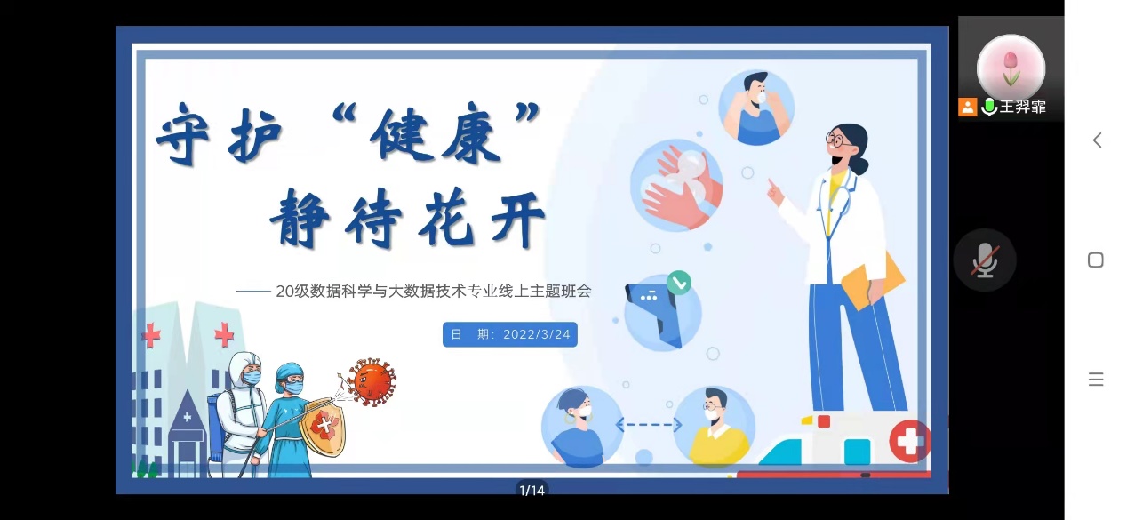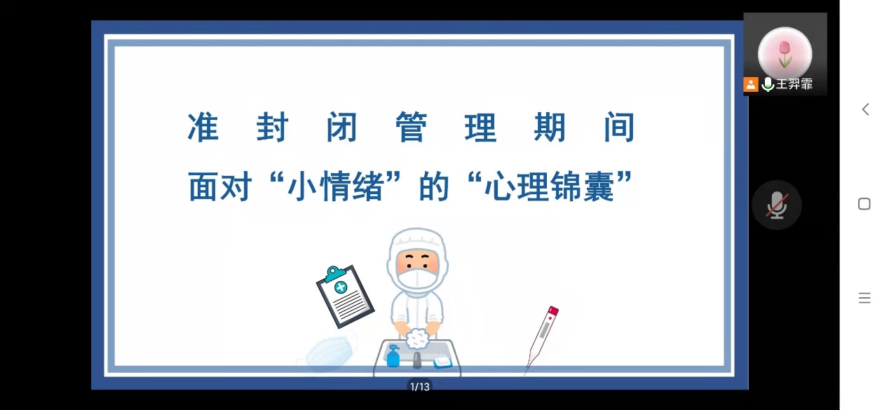 辅导员心连心——积极心理学视角下的守护“健康”,静待花开主题班会。结合公司疫情防控政策要求,引导员工科学认识疫情防控形势,坚定信心,统一行动。以战疫一线榜样事迹为例开展思政教育,培养同学们心怀感恩,感悟奉献精神,强化责任意识。同时引导同学们敞开心扉交流,相互支持,疏导情绪,携手同行。