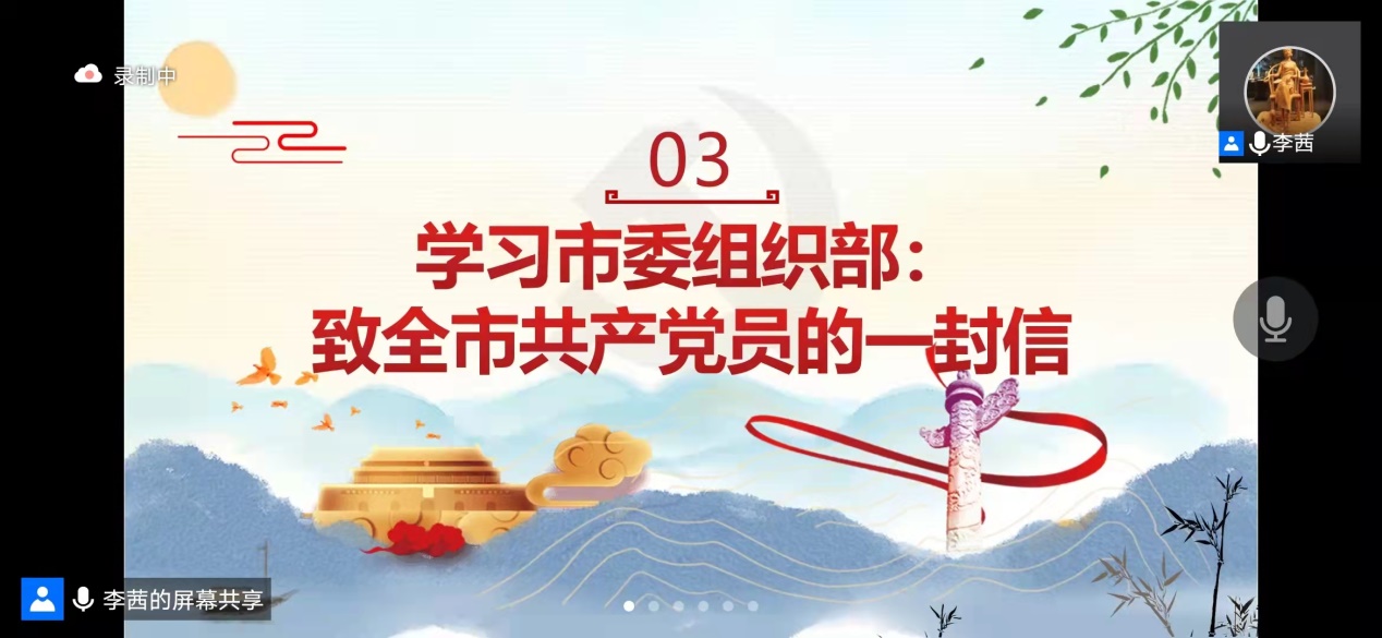 3月24日,中共上海市委组织部发布了《在大战大考中彰显特殊责任、特殊担当——致全市共产党员的一封信》,员工第一党支部及时积极组织支部党员认真学习这封信的精神内涵,并结合当前严峻的疫情防控形势背景,立足自身发挥先锋模范作用情况开展心得交流。