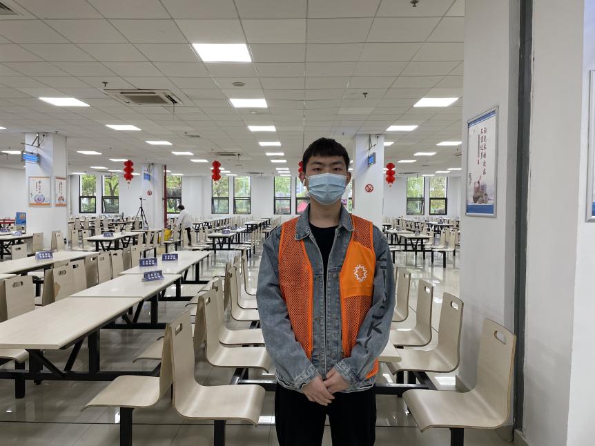 19级生物医学工程(本科)4班张嘉威作为一名入党积极分子义无反顾投入到疫情防控志愿服务中,他认为身为入党积极分子和员工干部,他有责任有义务去冲在抗疫的前面。疫情期间他从餐饮组的一名组员一直做到如今组长的职位,付出了很多也同样收获了很多。从疫情开始一直到现在食堂的秩序发生了很大的变化,同学们从一开始的不闻不问,到现在的主动排队保持间距,这都是大家这段日子以来努力的结果,看到如今井然有序的样子,他相信每一名志愿者的心中都是高兴的。