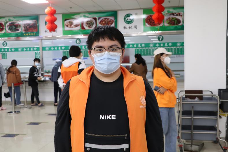 来自21级数据科学与大数据技术1班的陈大景同学表示:很开心能在此次校园防疫工作中贡献自己的一份力量,同时也让我想起假期在故乡百色当防疫志愿者的日子,这两段时期我都觉得十分珍贵,因为我感受到了当代青年的爱国情怀,在这两次疫情中我都遇到了无数和我一样乐于志愿工作的青年,这让我感觉中国未来可期!同时在这些日子里,我体会到了对别人的热情也是对自己的一份馈赠,让自己在失落时能想到,自己也是有很光明的一面从而重新振作。很喜欢志愿工作,我认为能做自己喜欢的事情是一件很开心的事情,这份开心就足以让我坚定地完成这项工作。