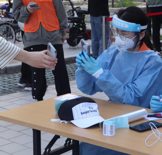 来自20级医疗产品管理(本科)2班的邢辰宇同学积极响应公司号召,担任南苑b2组的小组长,积极配合公司进行南苑核酸类志愿者工作的线下开展,主要负责等候区和待测区的引导以及劝导同学们规范佩戴口罩。在志愿者服务过程中,由于疫情防控的突发性,邢辰宇同学遇到了很多的问题,例如:如何有效劝导同学们自觉保持一米间隔,或是如何提高同学们排队做核酸的效率。但在与其他组长的共同努力与讨论后,问题最终都及时、有效地解决,邢辰宇同学为有效阻断疫情传播贡献了一份自己的力量感到非常光荣。
