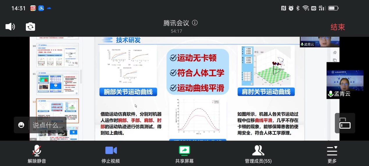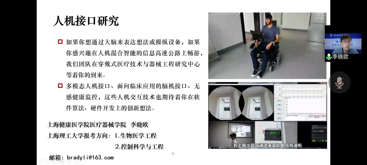 本次活动包括导师科研工作介绍、参会同学自我介绍及师生互动交流三个环节。首先,导师们通过视频、PPT等精彩纷呈的形式展示研究方向、研究成果以及毕业生去向等员工们关心的重点内容,涉及生物医学传感与检测、生物力学、生物材料、医用光学、健康大数据处理等多个领域。会场实时在线人数不断攀升,员工参会峰值人数达到45人。师生互动环节时,来自校内外的多名同学踊跃进行自我介绍,珍惜难得的机会,与导师们就考研、研究方向和内容等问题展开交流。本次分会场活动最终在气氛热烈的讨论中走向尾声,营员们纷纷表示收获颇丰,对研究生的学习生活有了更深刻的认识,更加坚定走上科研道路的决心。