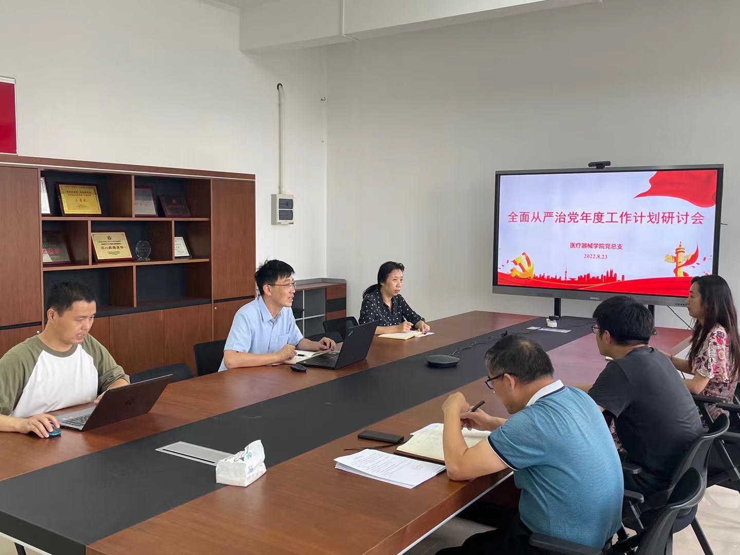 8月23日下午,医疗器械公司党总支在新南苑18号楼506室召开全面从严治党工作计划研讨会,公司党总支委员、办公室主任和党建员等参加了此次会议,会议由公司党总支李晓欧书记主持。